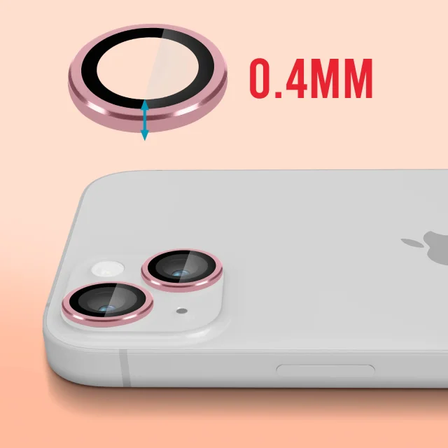 Zašcita kamere za iPhone 14 in 14 Plus iz ultra-prosojnega kaljenega stekla 9H - roza obris