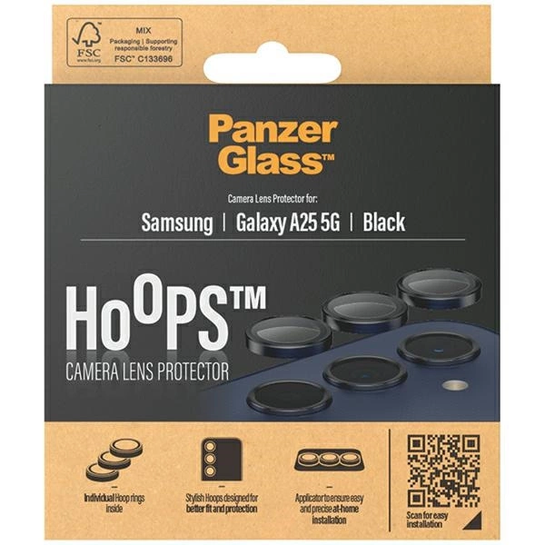 Pokrov PanzerGlass Hoops Camera s črnim okvirjem je bil zasnovan tako, da se popolnoma ujema z videzom telefona Samsung Galaxy A25 5G. Je subtilen in eleganten, ne da bi spremenil estetiko telefona, temveč mu daje še bolj moderen značaj.