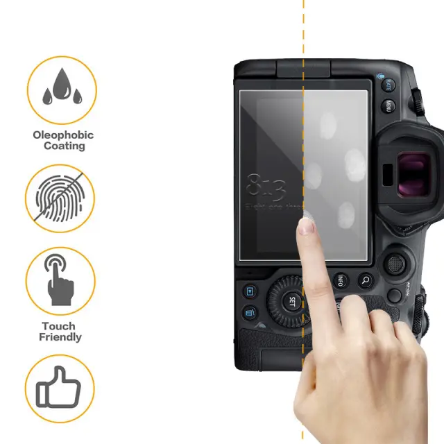 Ultra-Thin & HD Clear: ta zaščita zaslona Canon EOS R6 se ponaša z ultratankim profilom le 0,26 mm, ki ohranja elegantno zasnovo vašega fotoaparata in zagotavlja kristalno jasen prikaz slike brez ogrožanja občutljivosti na dotik.