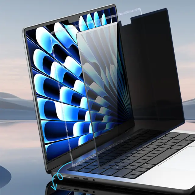 Zaščita pred bleščanjem in vohunjenjem: Ta zaščita zaslona za MacBook učinkovito zmanjšuje bleščanje sončne svetlobe in fluorescentne svetlobe ter zagotavlja udobno izkušnjo gledanja. Ima tudi tehnologijo 30° zasebnosti, ki ščiti podatke na zaslonu pred vizualnim vdorom.