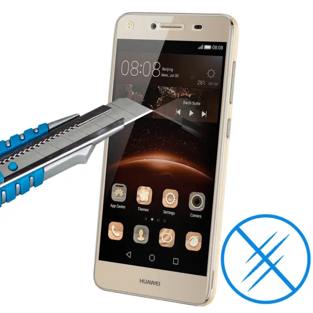 Zašcitna folija iz kaljenega stekla za Huawei Y5 2. Ultra odporna, najvecja trdota 9H: zašcita pred udarci, padci, praskami, ostrimi predmeti in sledi. Ultra tanek (0,3 mm): ne vpliva na dotik ali barvno upodabljanje.