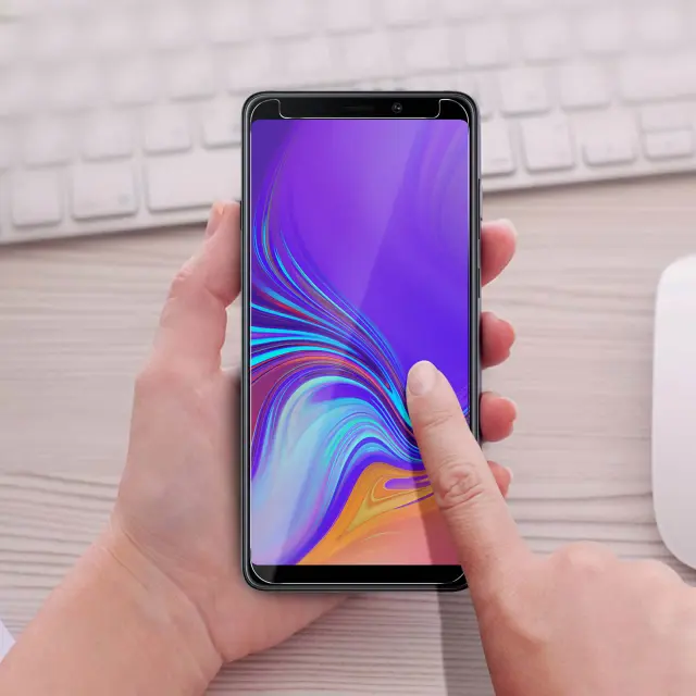 Posebno pre-cut zaščitno steklo za Samsung Galaxy A9 2018. Izdelano iz 2,5D kaljenega stekla - Debelina: 0,33 mm. Visok indeks trdote 9H: izjemno odporen na praske, udarce in ostre predmete. Oleofobni premaz, odporen na prstne odtise in maščobne sledi.