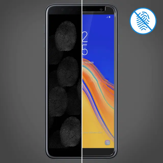 Posebej vnaprej izrezana zaščita zaslona za Samsung Galaxy J4 Plus. Iz 2,5D kaljenega stekla - Debelina: 0,33 mm. Visok indeks trdote 9H: izjemno odporen na praske, udarce in ostre predmete. Oleofobni premaz, odporen na prstne odtise in maščobne sledi.