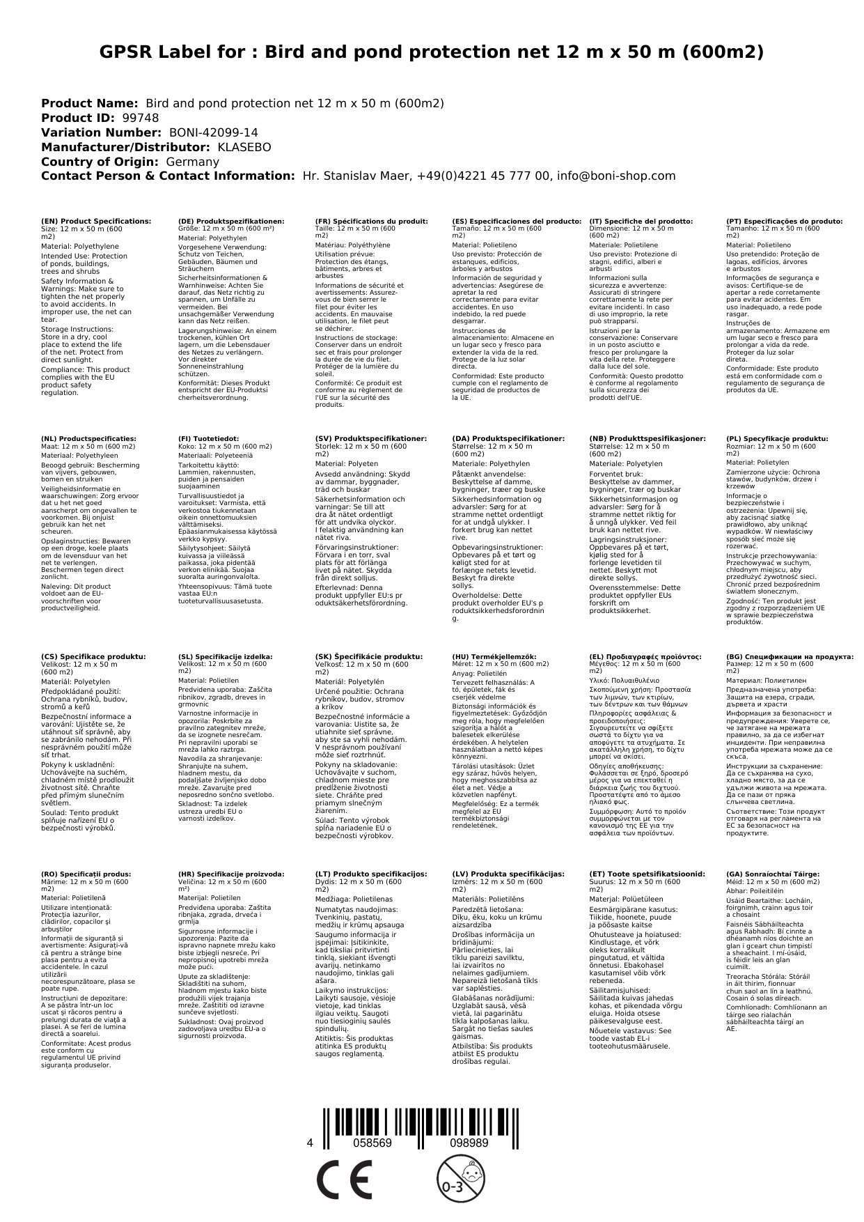 Zaščitna mreža za ribnik 12x50m iz HDPE plastike z UV-stabilnostjo in odpornostjo pred listjem in plenilci