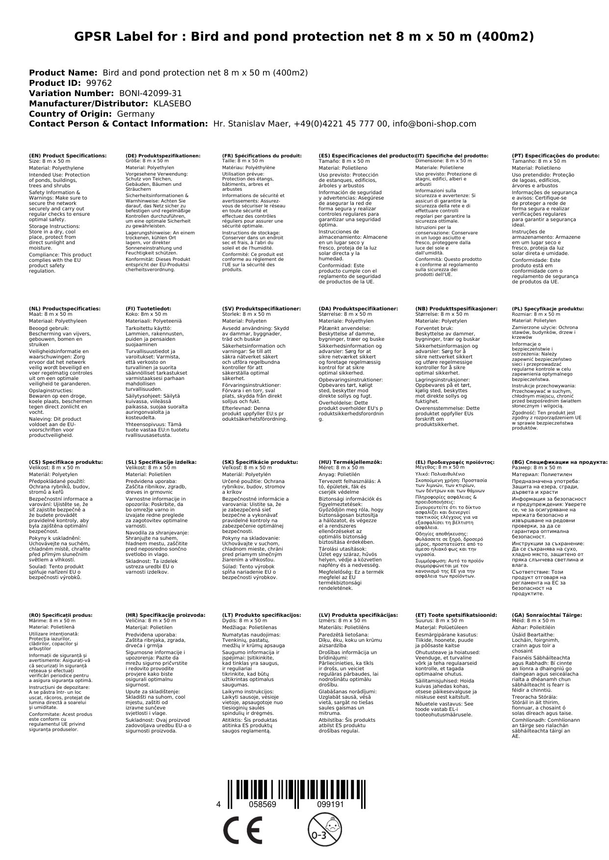 Zaščitna mreža za ribnik 400m (8x50m) UV-stabilna in trpežna iz HDPE plastike