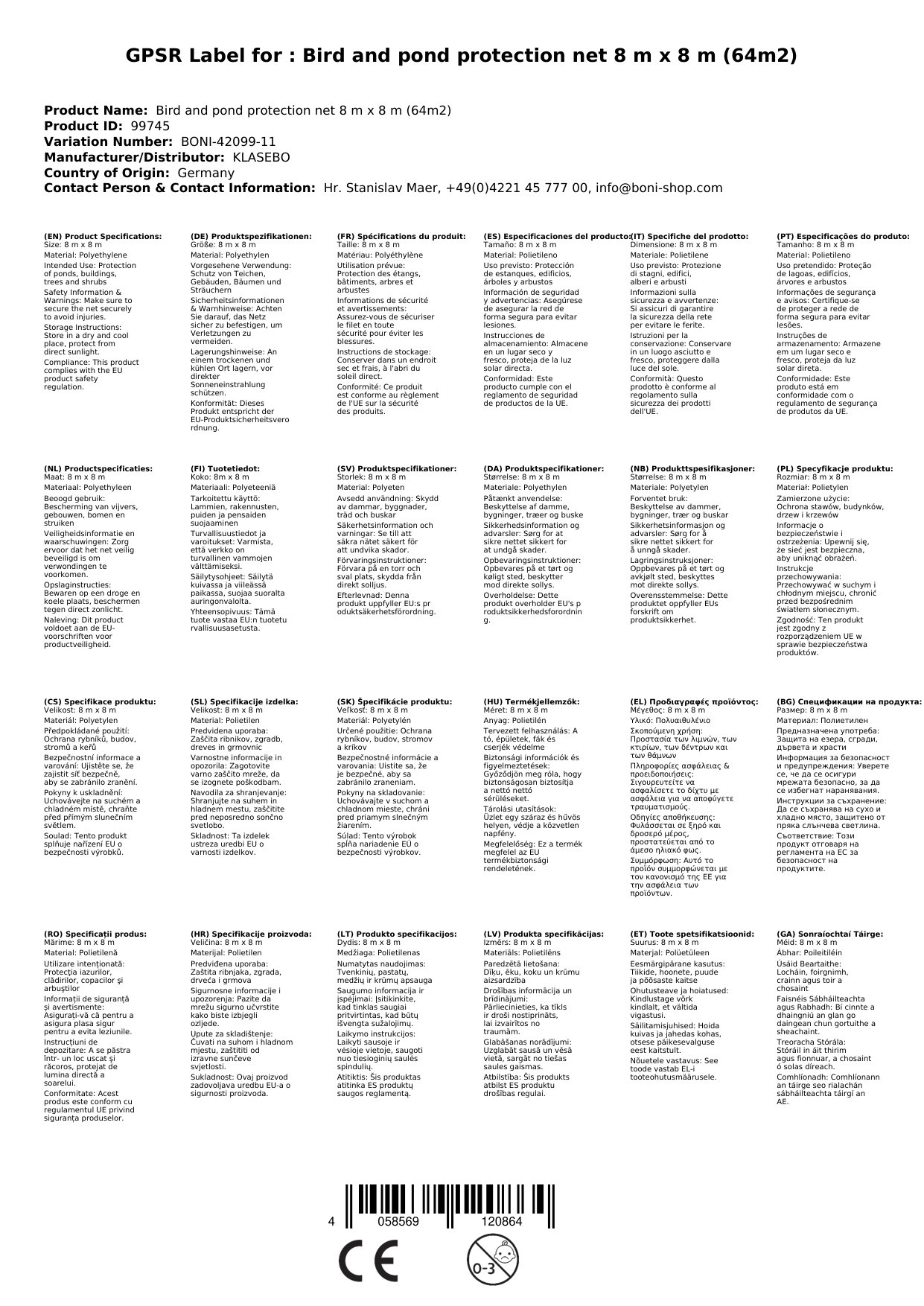 Zaščitna mreža za ribnik 8x8m z HDPE materialom in UV stabilnostjo