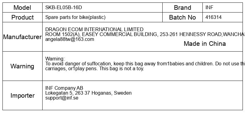 Opozorilo: Da bi se izognili nevarnosti zadušitve, vrečko hranite izven dosega dojenčkov in otrok. Vrečke ne uporabljajte v otroških posteljicah, vozičkih ali igralih. Ta vreča ni igrača.
