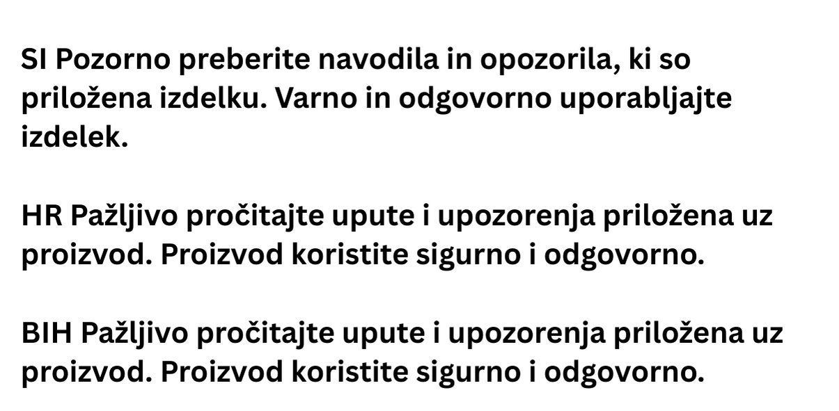 Slike o varnosti izdelka vsebujejo opozorila na embalaži izdelka in lahko vključujejo ključne varnostne informacije, povezane z določenim izdelkom.