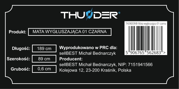 Zaščitna podloga za fitnes naprave THUNDER YG-PROOF-BLACK – 195 × 91 cm, 6 mm, gumijasta, črna