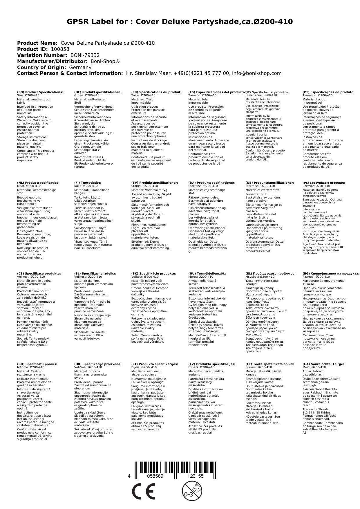 Zaščitna prevleka za senčnik Deluxe Ø200-410 cm Vodoodporna in UV-odporna