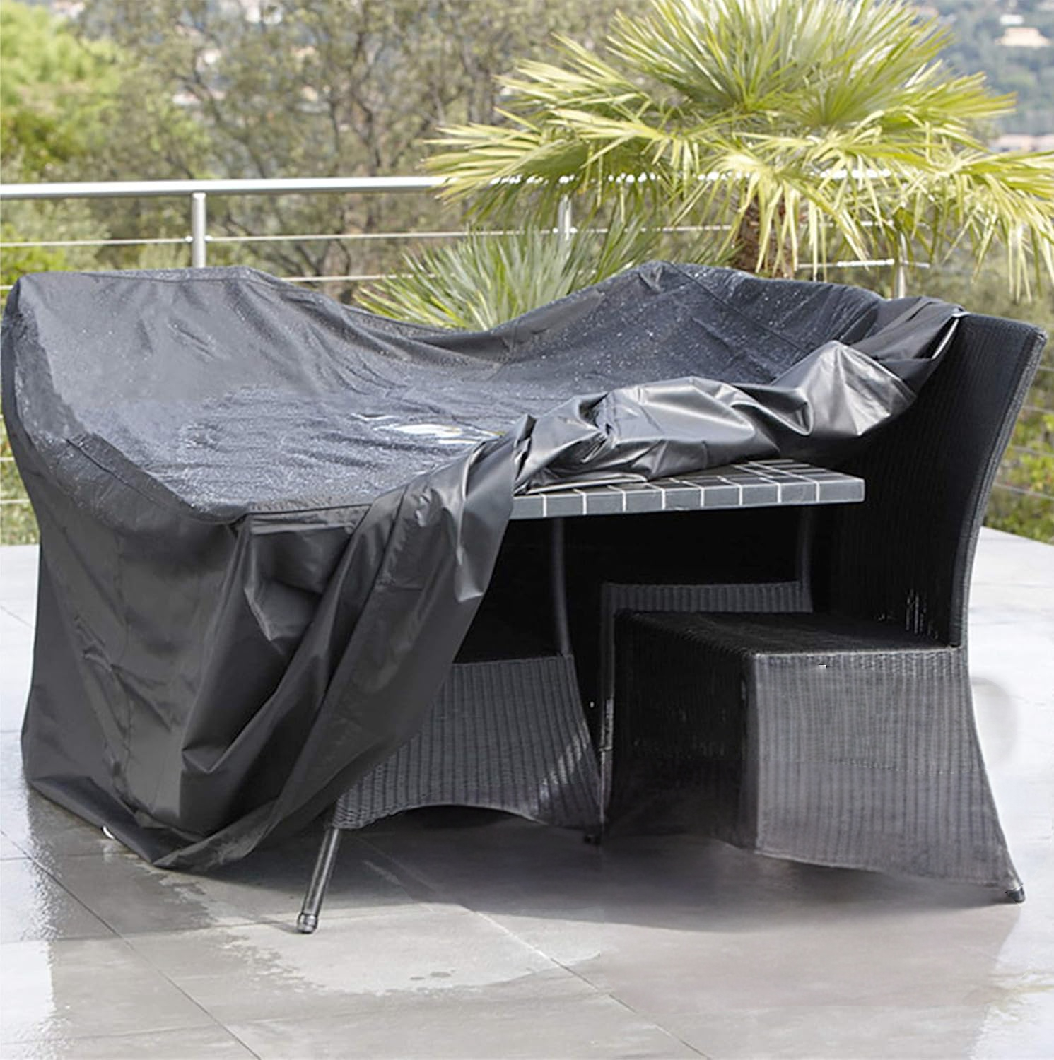 Zaščitna prevleka za vrtno mizo z dimenzijami 125 x 125 x 85 cm predstavlja zanesljivo rešitev za vse, ki želijo svoje zunanje pohištvo učinkovito zaščititi pred neugodnimi vremenskimi vplivi. Izdelek je izdelan iz trpežne plastike z visoko gramaturo, kar zagotavlja robustno zaščito pred dežjem, snegom, vetrom in sončnim sevanjem skozi vse leto. Uporaba je izjemno enostavna, saj prevleko le razgrnete čez izbrano pohištvo in jo pritrdite, s čimer zagotovite stabilnost tudi v zahtevnejših razmerah. Njena univerzalna oblika in elegantna črna barva omogočata uporabo na različnih vrtovih, terasah ali balkonih, ne glede na obstoječi slog ureditve.