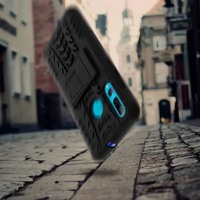 Zašcitna torbica, odporna proti udarcem, z integriranim stojalom - crna str. Huawei P Smart Plus 2019 in P Smart 2019