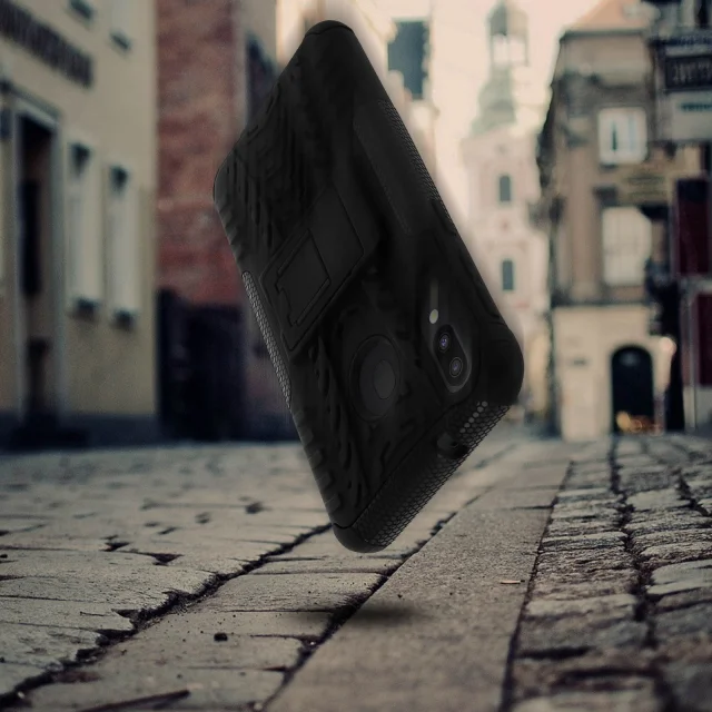 Zašcitna torbica, odporna proti udarcem, z integriranim stojalom - crna str. Samsung Galaxy M20