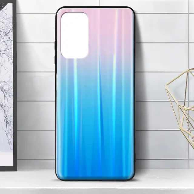 Xiaomi Redmi 9T in Poco M3 roza/moder holografski ovitek. Ta lupina je zaradi silikonskega gela in polikarbonatne zasnove zelo odporna na udarce in praske. Njegova dvobarvna holografska prevleka mu daje moderen in eleganten videz