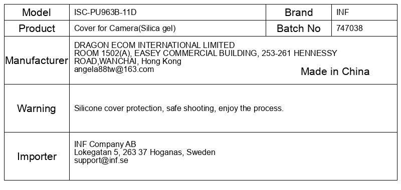 Koži prijazen in udoben: izdelan iz visokokakovostnega silikona, je ta torbica za fotoaparat mehka, udobna za držanje in varen oprijem. Popolnoma je zasnovan po modelu Insta360 X3, kar zagotavlja enostavno uporabo.
