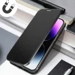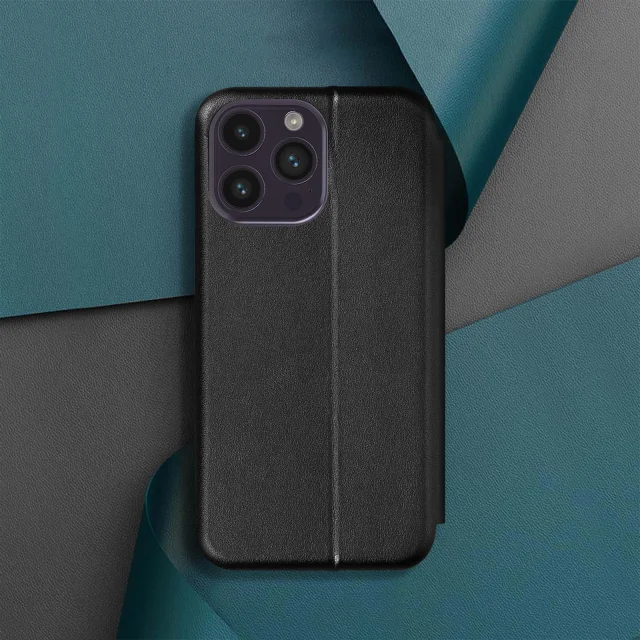 Zašcitna torbica za iPhone 14 Pro Max, umetno usnje z držalom za kartico - crna