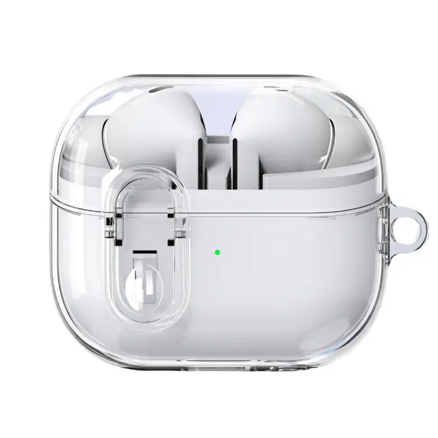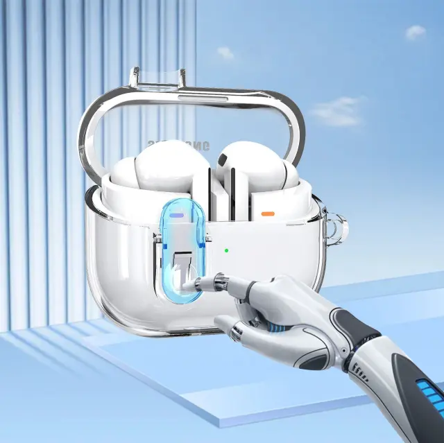 Kristalno čista zasnova: ta etui predstavlja elegantno zasnovo vaših slušalk Samsung Galaxy Buds 3 ali Buds 3 Pro, hkrati pa zagotavlja zanesljivo zaščito. Prozoren material vam omogoča enostaven ogled stanja polnjenja in dostop do gumba za seznanjanje, ne da bi morali odstraniti ohišje.