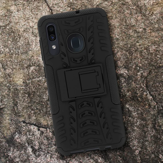 Zašcitna torbica za Samsung Galaxy A50 / A30 / A30s, odporna proti udarcem, z vgrajenim stojalom - crna
