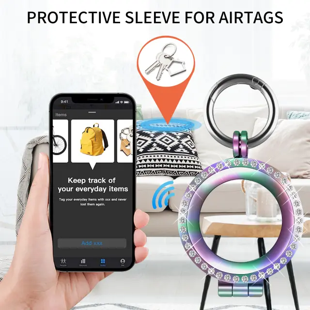 Enostavna namestitev: Torbica ima priročno zasnovo, ki omogoča enostavno pritrditev na vaše stvari, kot so ključi, torbe ali ovratnice za hišne ljubljenčke, kar olajša sledenje vašim dragocenostim.