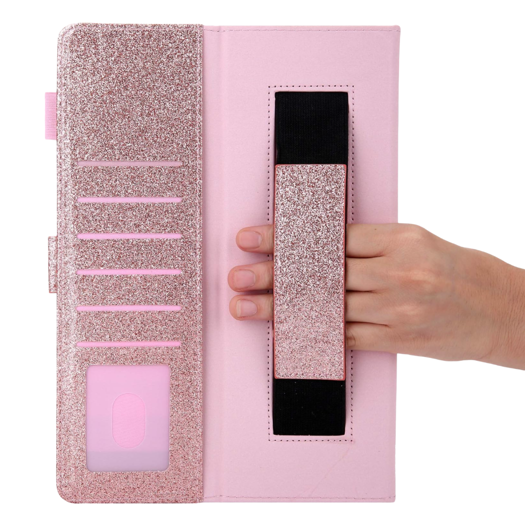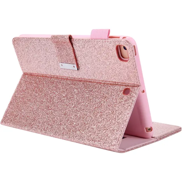 Stilski zaščitni etui tipa denarnica za iPad Mini 6 iz leta 2021 predstavlja premišljeno kombinacijo elegance in vsakodnevne funkcionalnosti. Izdelan je iz visokokakovostnih materialov z bleščečim zaključkom v roza barvi, ki napravi doda moden videz, hkrati pa zagotavlja zanesljivo zaščito pred zunanjimi vplivi. Ta preklopni ovitek je zasnovan tako, da napravo varuje pred praskami, prahom in nepredvidenimi udarci med prenašanjem. Zaradi svoje zasnove je primeren za različne situacije, od šolskih klopi in delovnega okolja do uporabe med potovanji.