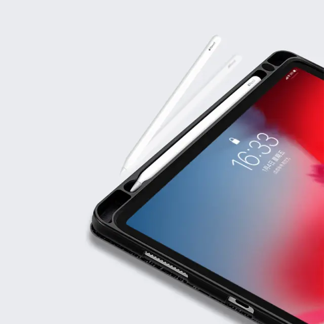 Podpora za Apple Pencil: Ta ovitek je zasnovan z mislijo na uporabnike Apple Pencil in ima vgrajen nosilec, ki varno hrani vaše pisalo in ga imate vedno pri roki. Podpira tudi magnetno pritrditev in polnjenje, tako da lahko pisalo polnite, ne da bi morali odstraniti ovitka.