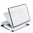 Izboljšano hlajenje in stabilnost: Zahvaljujoč premišljeni zasnovi, ki vključuje protizdrsne nogice in dvignjene vogale na spodnji strani, ta ovitek ne le ščiti vaš MacBook Pro, temveč tudi izboljšuje njegovo funkcionalnost. Dvignjena zasnova omogoča boljši pretok zraka, kar pomaga pri hlajenju prenosnika in preprečuje pregrevanje. Protizdrsne nogice zagotavljajo stabilnost na različnih površinah, kar je še posebej koristno pri delu na poti ali v nestabilnih okoljih.