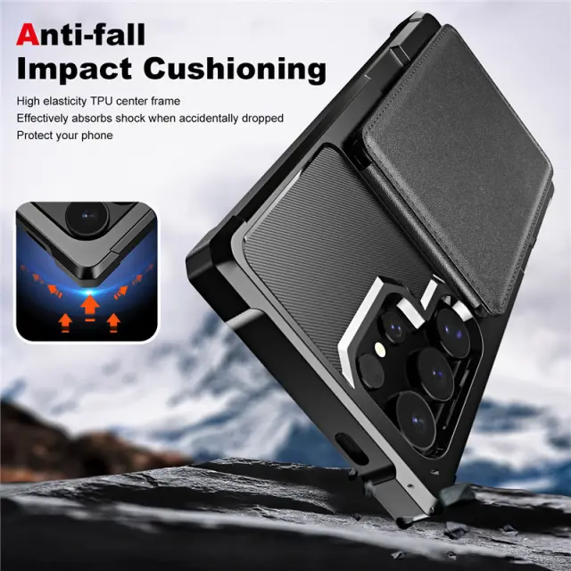 Zasnova reže za kartice: Ta ovitek za Samsung ima priročne reže za kartice, ki vam omogočajo varno shranjevanje do 4 kartic. Ni vam treba nositi okorne denarnice, s tem praktičnim ovitkom poenostavite svoje bistvene stvari.