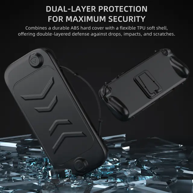 Vrhunska zaščita: Zaščitite svoj Switch 2 pred vsakodnevnimi nevarnostmi z našim robustnim ovitkom. Kombinacija materialov TPU in ABS zagotavlja odlično odpornost proti praskam, udarcem in manjšim padcem, kar zagotavlja, da vaša konzola ostane v brezhibnem stanju. Trda zunanjost odbija udarce, medtem ko mehka notranjost iz TPU oblazini vašo napravo, kar nudi celovito zaščito brez nepotrebne teže. Uživajte v miru, saj veste, da je vaš Switch 2 zaščiten pred majhnimi življenjskimi nesrečami.