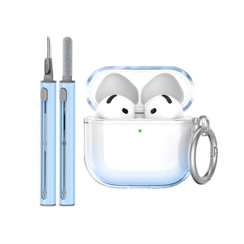 Zaščitni TPU ovitek, združljiv z Apple AirPods 4, s čistilnim peresom in obeskom za ključe Blue