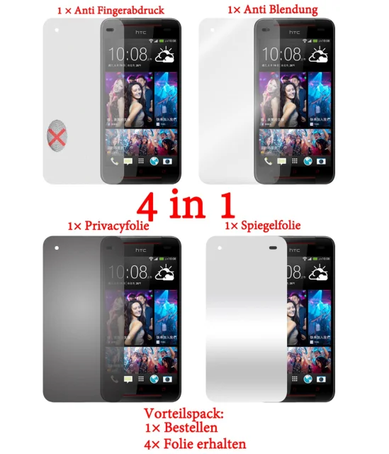 Zaščitniki zaslona Cadorabo, združljivi s HTC - Zaščitnimi filmi v High Clear - 4 filmi (1x zasebnost - 1x ogledalo - 1x Matt - 1x anti -Fingerprint)