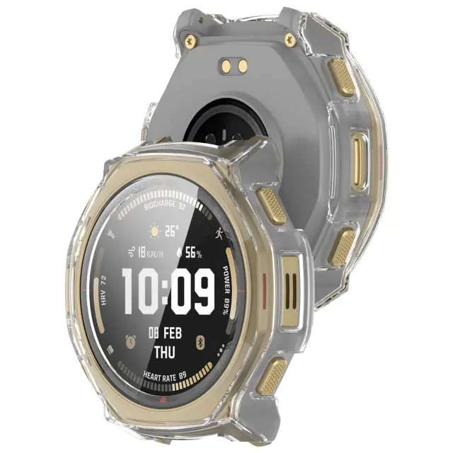 Visoka transparentnost: Kristalno čist PC material tega ohišja zagotavlja visoko transparentnost, kar omogoča, da originalna lepota vašega Amazfit T-Rex 3 Pro zasije. Zaščita zaslona iz kaljenega stekla ohranja optimalno jasnost zaslona in občutljivost na dotik, kar zagotavlja neoviran pogled. Težko boste opazili, da je ohišje tam, medtem ko boste uživali v vrhunski zaščiti. Ta zasnova je idealna za uporabnike, ki želijo zaščititi svojo pametno uro, ne da bi pri tem ogrozili njeno estetsko privlačnost. Prozorna zasnova zagotavlja, da se ohranijo originalna barva in slog ure.