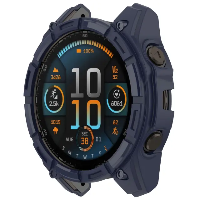Eleganten odprt dizajn: Odprt dizajn tega ohišja ne le dodaja pridih elegance vašemu Garminu Tactix8, temveč omogoča tudi optimalno prezračevanje, ki preprečuje pregrevanje med intenzivnimi vadbami ali dolgotrajno uporabo. Zapleteni izrezi poudarjajo prvotno estetiko ure, hkrati pa omogočajo enostaven dostop do vseh gumbov in senzorjev. Na voljo v polnočno modri in mornarsko modri barvi, to ohišje brezhibno dopolnjuje vaš osebni slog in daje izjavo, kamorkoli greste.