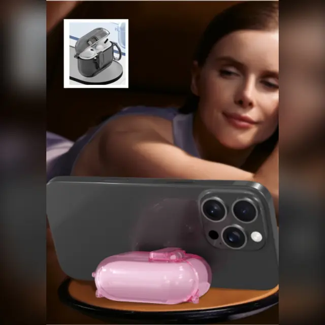 Ustvarjalna funkcija stojala: Prosimo, upoštevajte: to niso originalni deli. Več kot le zaščitno ohišje, ima ta ovitek za AirPods Pro 3 vgrajeno stojalo, ki vam omogoča preklapljanje med vodoravnim in navpičnim načinom gledanja. Ta ustvarjalna zasnova izboljša vašo multimedijsko izkušnjo, zaradi česar je popolna za gledanje videoposnetkov, video konference ali brskanje po vsebini brez uporabe rok. Funkcija stojala dodaja udobje in vsestranskost vaši uporabi AirPods Pro 3 in spremeni ohišje slušalk v funkcionalen pripomoček za različne scenarije. Uživajte v izboljšanih koti gledanja, kjer koli ste, s tem inovativnim TPU ohišjem.