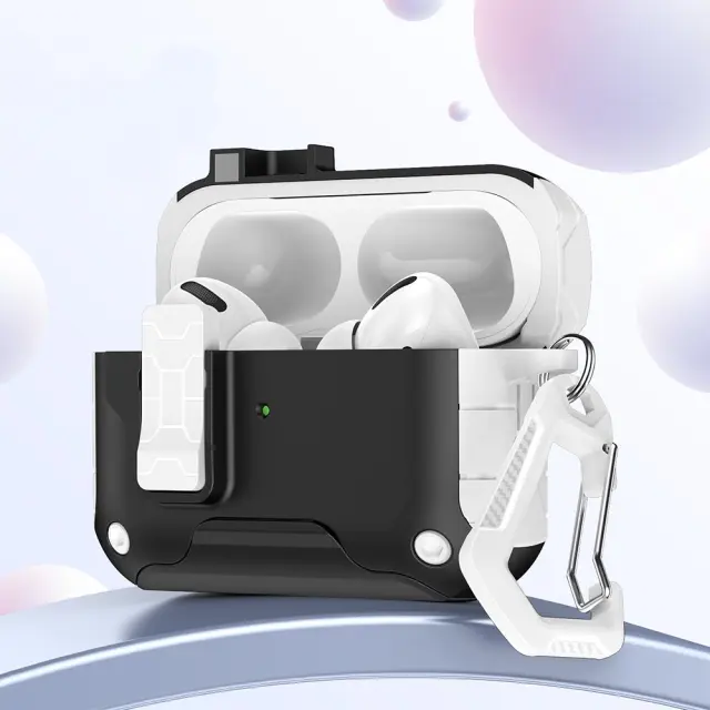 Zaščitno ohišje za AirPods 4 - TPU+PC, magnetno zapiranje, stojalo, kavelj White+Black