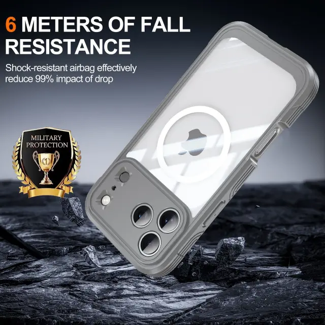 Priročna magnetna pritrditev: Vgrajena magnetna pritrditev omogoča enostavno in hitro pritrditev ohišja na vaš iPhone 17 Pro. Magneti so dovolj močni, da zagotavljajo varno pritrditev, hkrati pa omogočajo enostavno odstranitev ohišja, ko je to potrebno. To je idealno za uporabnike, ki pogosto menjajo ohišja ali uporabljajo magnetne nosilce.