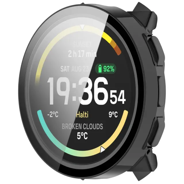 Popolna zaščita: To zaščitno ohišje, združljivo s Suunto Vertical 2, nudi popolno zaščito robov in površine. Integrirana zasnova PC in kaljenega stekla učinkovito ščiti vašo pametno uro pred praskami, udarci in nenamernimi padci, kar zagotavlja, da vaša naprava ostane v brezhibnem stanju. Posebej je zasnovano za varno prileganje in ohranjanje elegantnega profila vaše ure Suunto Vertical 2, kar zagotavlja brezskrbnost med vadbo, pustolovščinami na prostem in vsakodnevno uporabo. Natančne izrezljane odprtine omogočajo enostaven dostop do vseh gumbov in senzorjev, ne da bi pri tem ovirali funkcionalnost. Uživajte v brezkompromisni zaščiti s tem bistvenim dodatkom.