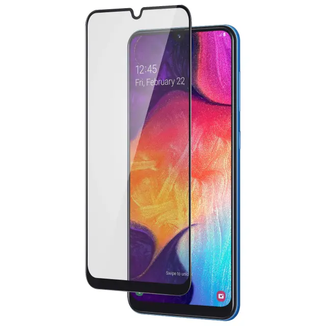 Pre-cut zaščita zaslona za Samsung Galaxy A50 / A30 / A30s. Izdelan iz visokokakovostnega kaljenega stekla s poševnimi robovi - Debelina: 0,33 mm. Visok indeks trdote 9H: izjemno odporen na praske, udarce in ostre predmete. Oleofobni premaz, odporen na prstne odtise in maščobne sledi.