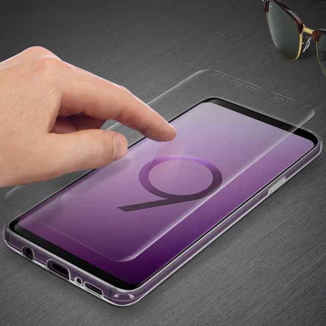 Zaščitni paket, sestavljen iz: 1 prozornega pokrova 1 folije iz kaljenega stekla. Posebej zasnovan za Samsung Galaxy S9 in izdelan iz prožnega in odpornega silikona. Popolna zaščita pred udarci in praskami. Dostopna kamera, senzor prstnih odtisov in priključki.
