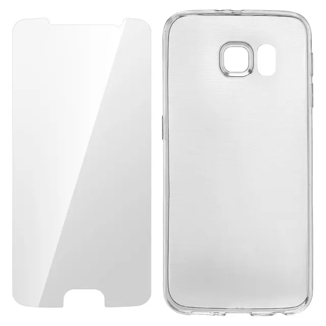 Komplet popolne zaščite za Samsung Galaxy S6. Prilagodljiv prozoren ovitek, zaradi katerega je vaš mobilni telefon viden. Zelo odporna zaščita zaslona iz kaljenega stekla, že vnaprej izrezana. Popolna zaščita pred udarci in praskami enostavna namestitev enostavna namestitev.