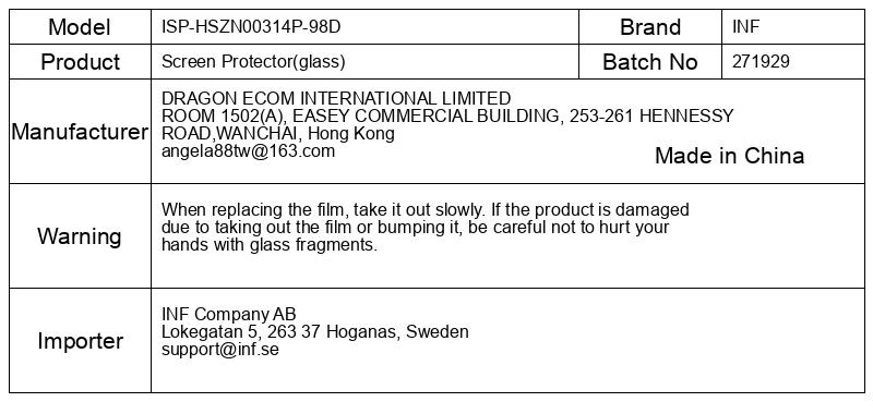 Pri nameščanju folije jo odstranite počasi. Če se izdelek poškoduje zaradi odstranjevanja folije ali udarca, pazite, da si ne poškodujete rok z drobci stekla.