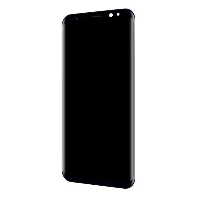 Original Samsung Galaxy S8 LCD zaslon za zamenjavo vašega poškodovanega. Zaslon Samsung Galaxy S8 z namešcenimi in integriranimi prikljucnimi kabli, pripravljen za namestitev. Celoten blok je 100 % združljiv za iskanje funkcije dotika.