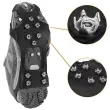 Močan oprijem: Zaščita proti zdrsu je izdelana iz elastičnega in vzdržljivega materiala z 10 jeklenimi zobmi/čepki, ki zagotavljajo, da vam na snegu in ledu ne zdrsne. V sprednjem delu stopala je 6 konic iz nerjavečega jekla, v peti pa 4 konice, ki zagotavljajo odličen oprijem na vseh terenih.