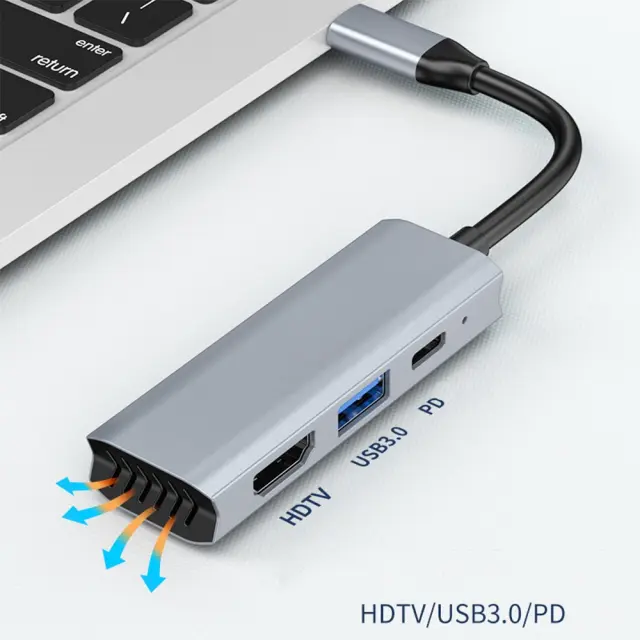 Izboljšan sistem hlajenja: 7-v-1 Type-C HUB ima napreden sistem hlajenja s sprednjim in zadnjim prezračevanjem, ki zagotavlja učinkovito odvajanje toplote tudi pri dolgotrajni uporabi s polno obremenitvijo. Ta zasnova preprečuje pregrevanje, ohranja optimalno delovanje in podaljšuje življenjsko dobo naprave. Zasnova zračne konvekcije povečuje učinkovitost hlajenja, zaradi česar je idealna za zahtevne naloge, kot so urejanje videa, igranje iger in prenos velikih datotek. Ta HUB je združljiv z napravami, kot sta Macbook in Huawei, kar zagotavlja stabilno in zanesljivo delovanje.