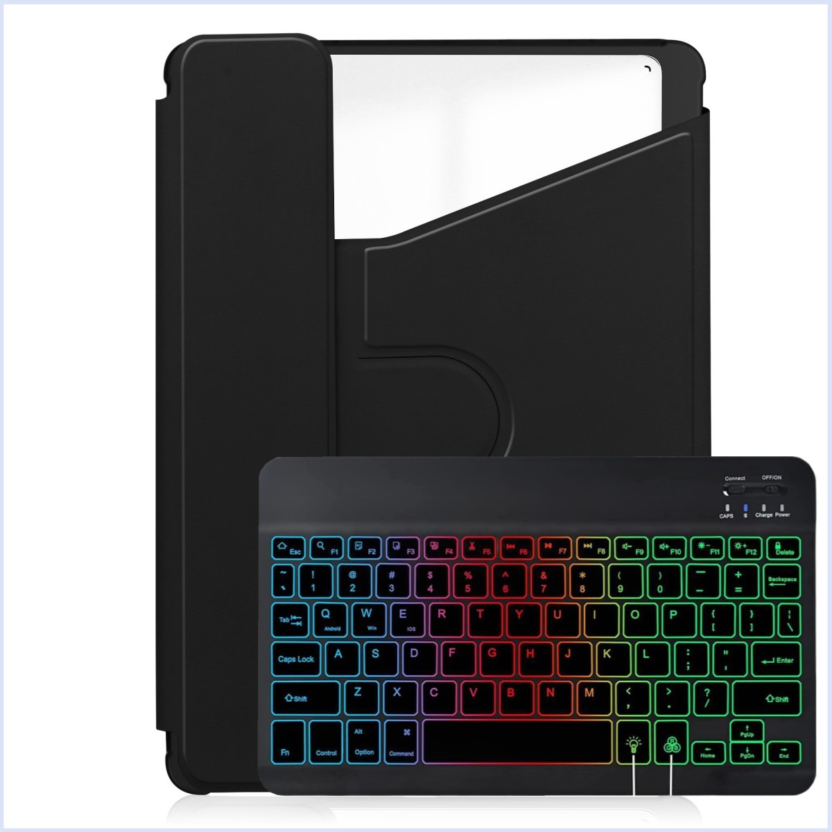 Vsestranska 360-stopinjska rotacija: Uživajte v prilagodljivih možnostih gledanja in tipkanja s 360-stopinjsko rotacijsko funkcijo. Preprosto preklapljajte med ležečim in pokončnim načinom, kar zagotavlja udoben kot gledanja za katero koli nalogo. Ne glede na to, ali tipkate dokument, gledate videoposnetek ali brskate po spletu, ta etui s tipkovnico ponuja popolno prilagodljivost za izboljšanje vaše produktivnosti in užitka.