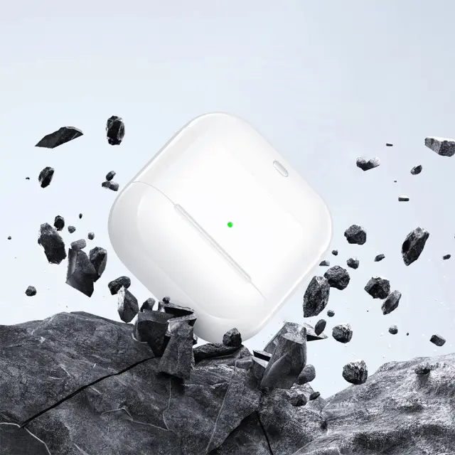 Priročni indikatorji polnjenja: Polnilni etui ima vgrajene indikatorje polnjenja, ki vam omogočajo, da na prvi pogled vidite stanje baterije. Bela lučka utripa 5-krat, ko se etui vklopi, in se samodejno izklopi po 30 sekundah, če ne zazna AirPods. Bela lučka sveti, ko se etui polni z zunanjim napajanjem, in se ugasne, ko je popolnoma napolnjen. Te funkcije zagotavljajo, da ste vedno obveščeni o stanju polnjenja vaših AirPods 3.