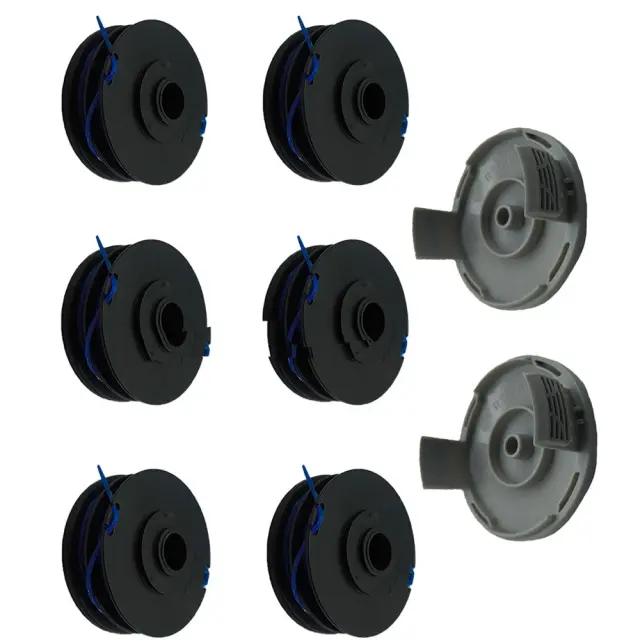 Združljiv nadomestni set RAC123 Trimmer Spool ×6 + RAC122 Cover ×2 za Ryobi