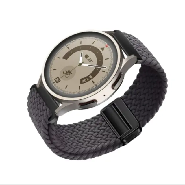 Eleganten pleten dizajn: Prosimo, upoštevajte: to niso originalni deli. Izboljšajte svoj slog s prefinjenim pletenim dizajnom tega najlonskega pasu, ki je združljiv s Samsung Watch7 in Watch6. Zapleten vzorec tkanja doda pridih elegance in prefinjenosti vaši pametni uri, zaradi česar je primerna za priložnostne in formalne priložnosti. Siva barva dopolnjuje široko paleto oblačil in stilov, kar vam omogoča, da izrazite svoj osebni okus. Tkanina izboljša tudi zračnost in prožnost pasu, kar zagotavlja udobno in varno prileganje. Izrazite se modno s tem elegantnim in funkcionalnim pasom za uro, zasnovanim za izboljšanje estetske privlačnosti vaše Samsung Watch7 ali Watch6.