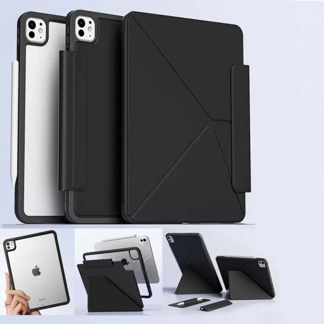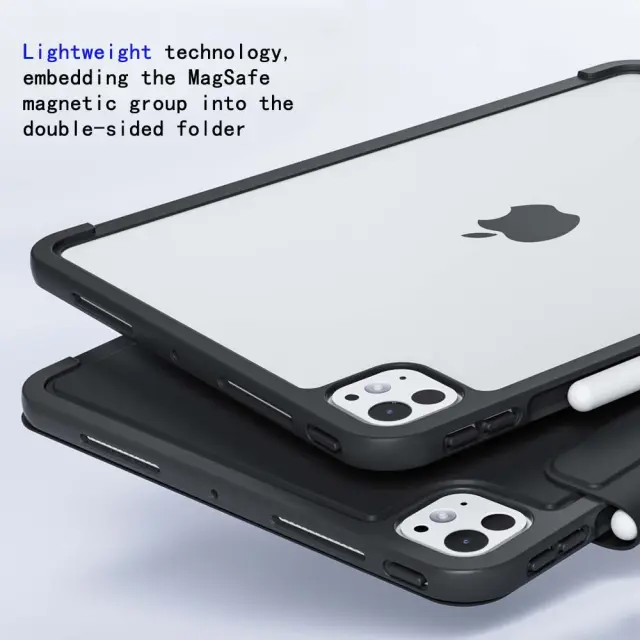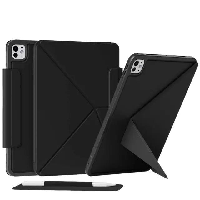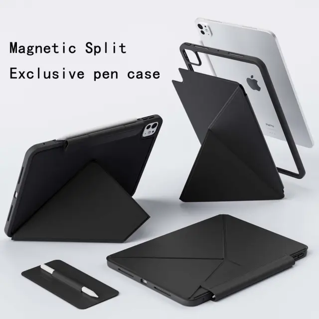 Stabilno in praktično: Zasnovan za iPad Air 13 in iPad Pro 11, ta ovitek združuje stabilnost in praktičnost. Magnetno zapiranje zagotavlja varno zapiranje, medtem ko integrirano stojalo omogoča udobno gledanje videoposnetkov ali delo. Ne glede na to, ali ste doma, v pisarni ali na poti, ta ovitek zagotavlja zaščito in funkcionalnost.