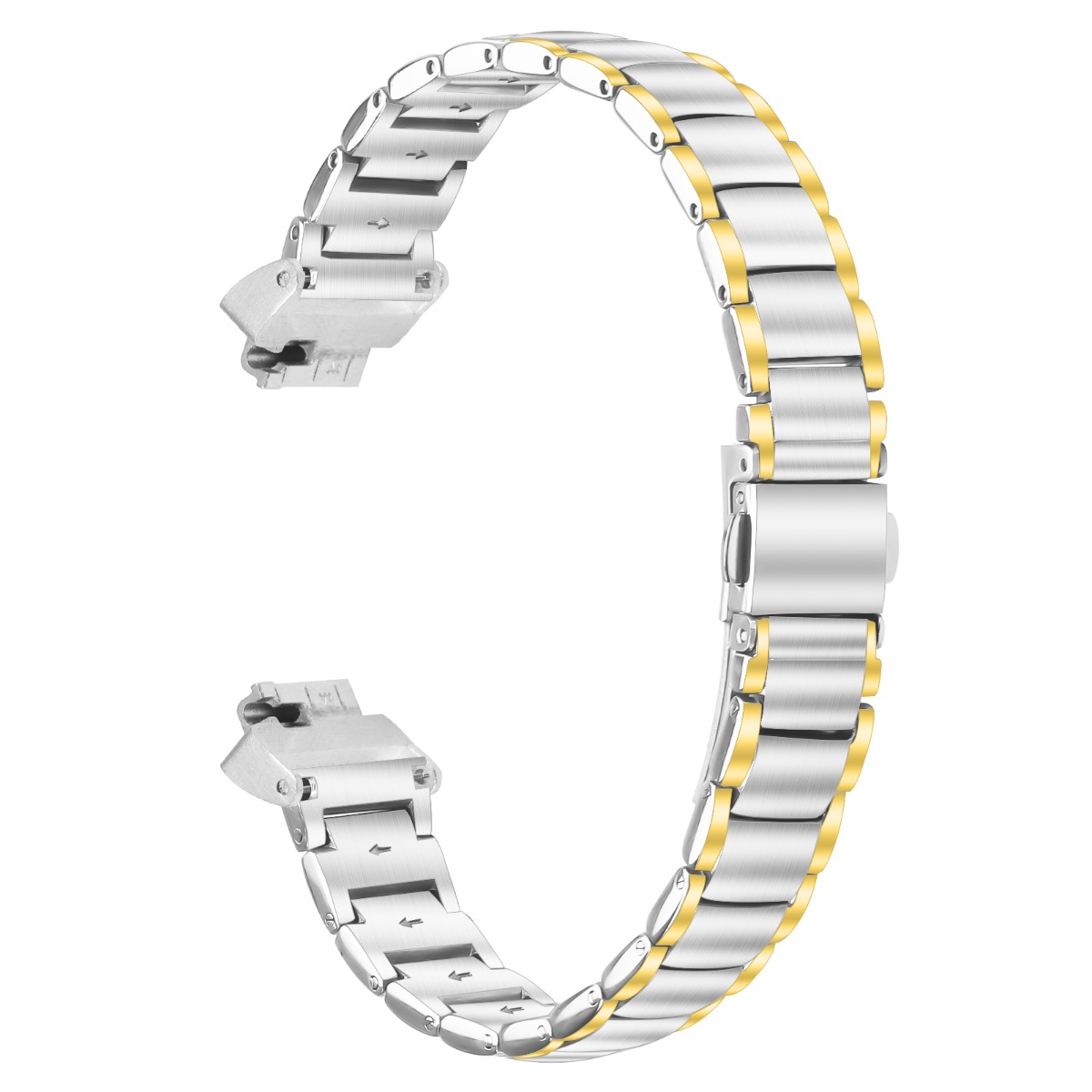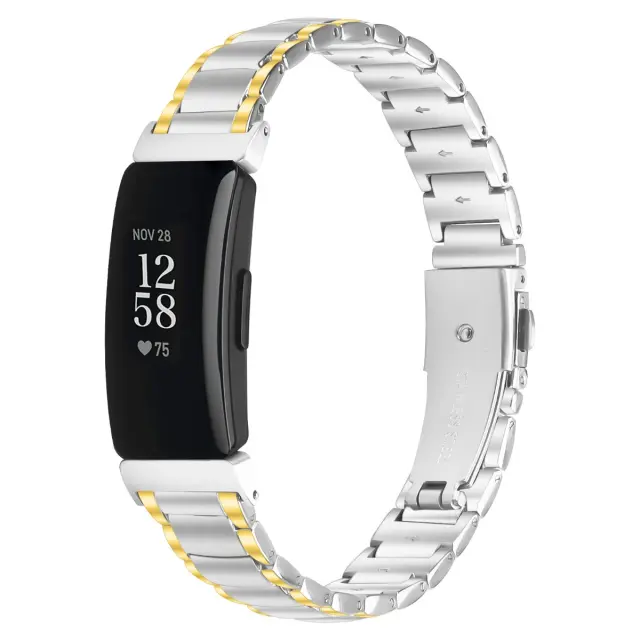 Varna zaponka metuljček: Prosimo, upoštevajte: to niso originalni deli. Ta kovinski pašček, združljiv s Fitbit Inspire, Inspire HR in Inspire 2, ima varno zaponko metuljček, ki zagotavlja, da vaša pametna ura ostane trdno na mestu. Zasnova zaponke metuljček ponuja brezšivno in elegantno zapiranje, ki preprečuje nenamerno odpenjanje. Enostavno ga je prilagoditi in zagotavlja tesno prileganje, kar vam daje mir med vadbo in drugimi aktivnostmi. Zanesljiv mehanizem zapiranja zagotavlja, da vaš Fitbit ostane varno pritrjen na zapestje, kar zmanjšuje tveganje izgube ali poškodbe. Uživajte v popolni kombinaciji sloga in varnosti s tem natančno zasnovanim paščkom iz nerjavečega jekla.