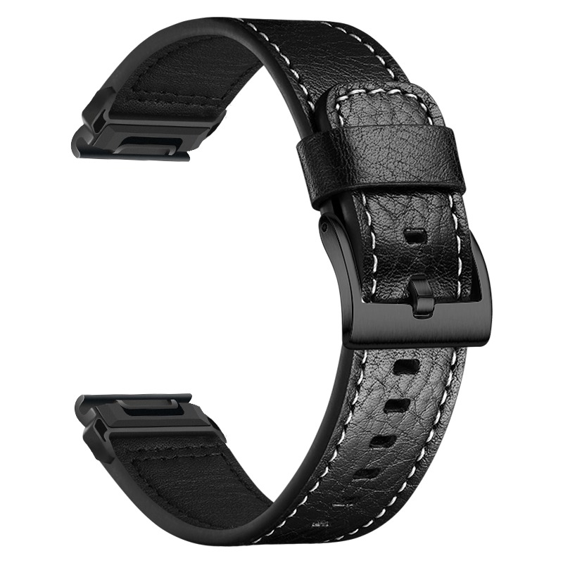 Združljiv s Garmin Fenix 8/7X/3 - Premium usnjen pašček za uro Black 20 mm